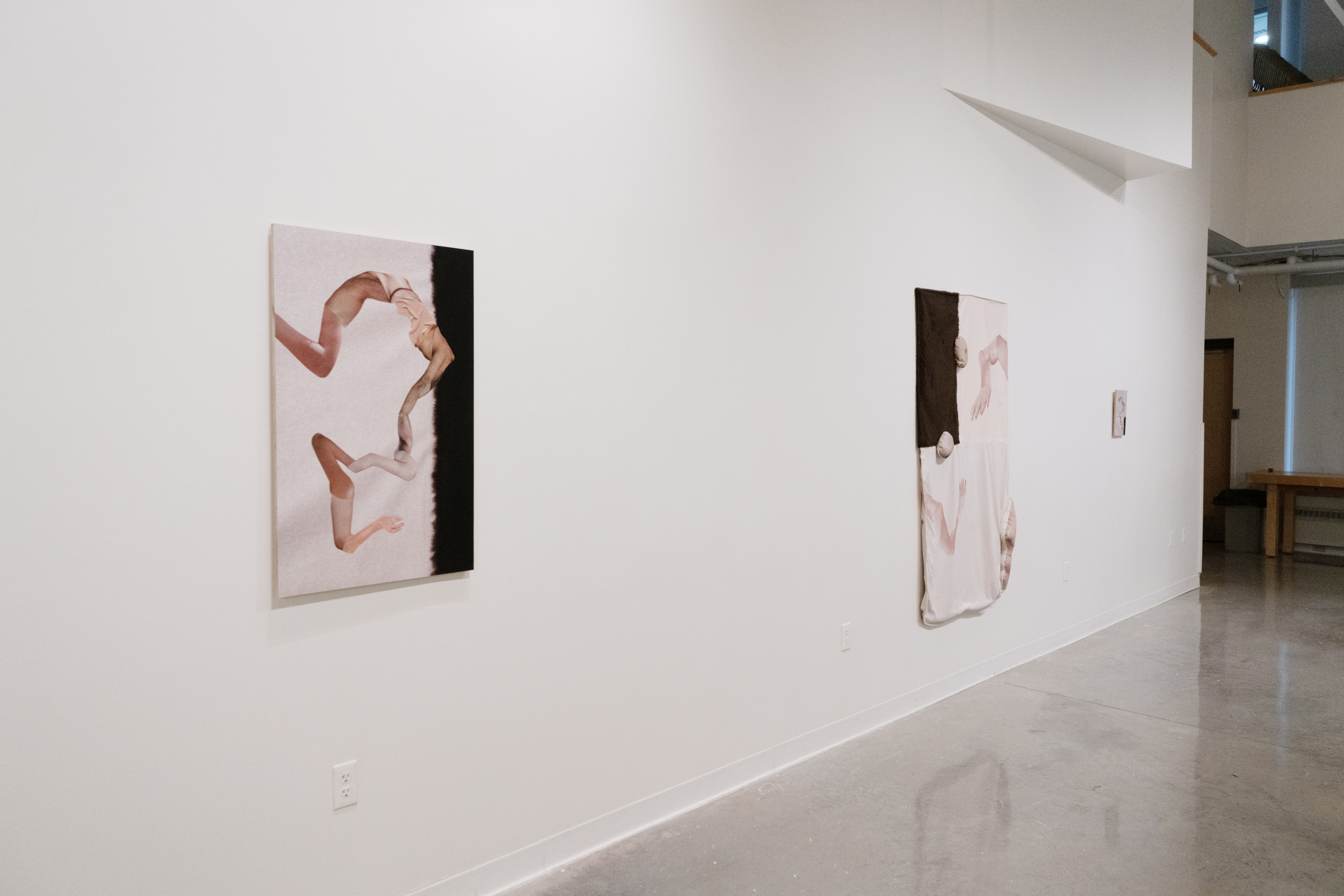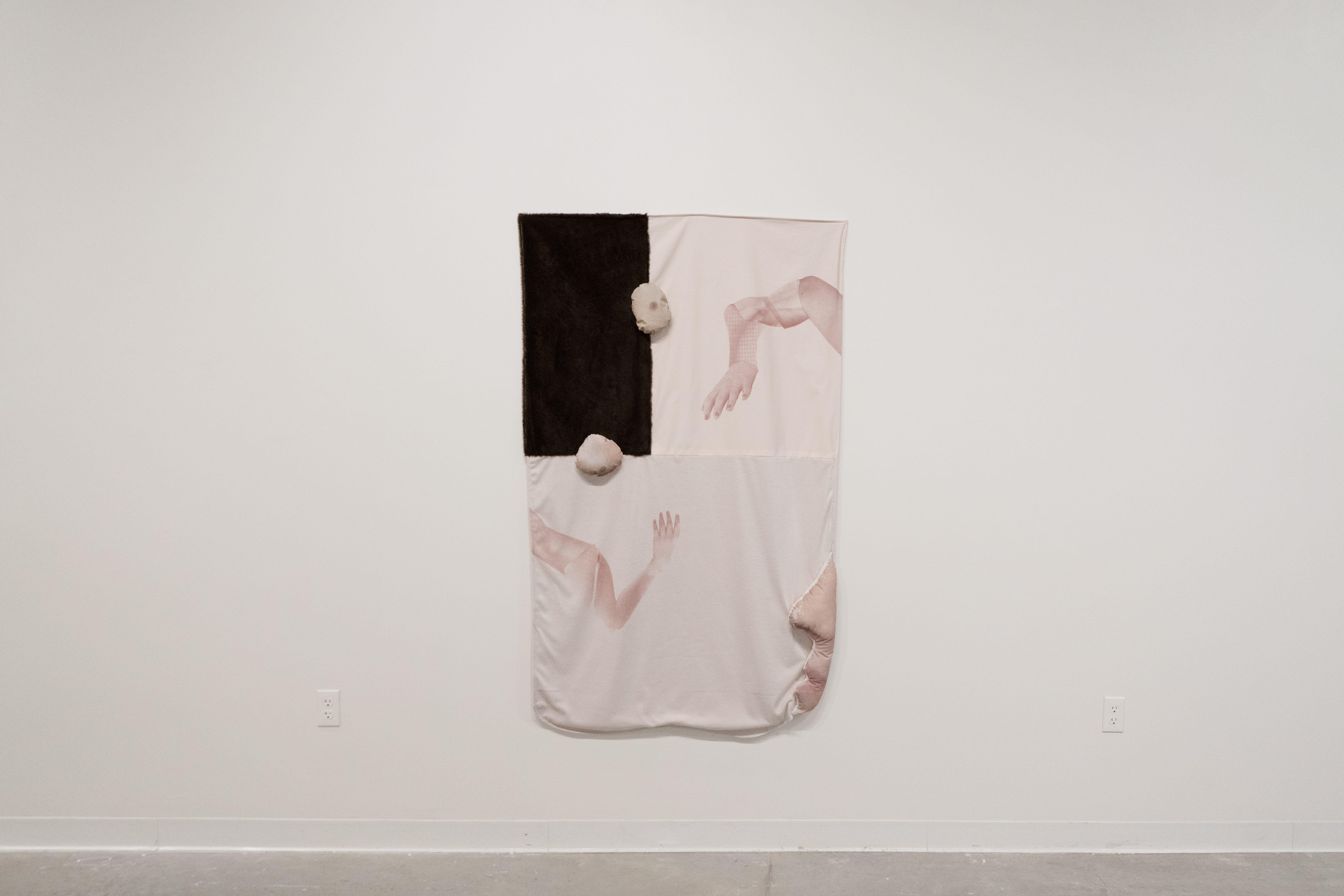 My work toys with abjection and desire through a queer lens. Queer realization is a feeling of tumbling through newness, constantly discovering sources of euphoria and dysphoria. Fabric and collage visually represent this ever-changing identity. Different pieces are cut apart and stitched back together to create a bodily landscape free from expectations of binary gender. I hunt through fabric stores for colors and textures that resemble flesh, and comb lifestyle magazines for folds, muscles, and rolls. Separating the perfectly fit and toned bodies from their magazine context, I reassemble them without regard for proper anatomical positions: armpits next to knees; feet next to hands. The lines between what is body and what is not blur. Body parts bend and contort towards each other and into themselves. They struggle to find their way, yearning to be understood in all their complexity. In breaking rules of anatomy, I exert control over cisnormative bodies in ways that I cannot with my own.
